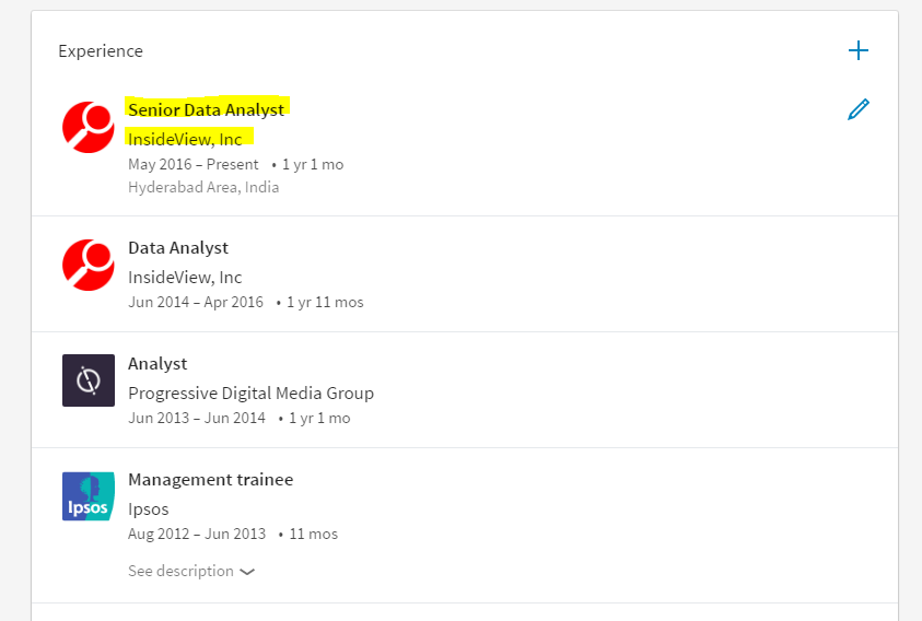experiencia en linkedin lo que vemos resaltado conamarillo, en primer lugar